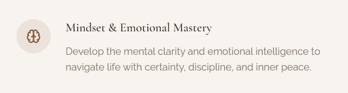 Elevate your inner state - mindset, emotional patterns, energetic tone - so your life and business reflect clarity, discipline, and intention.